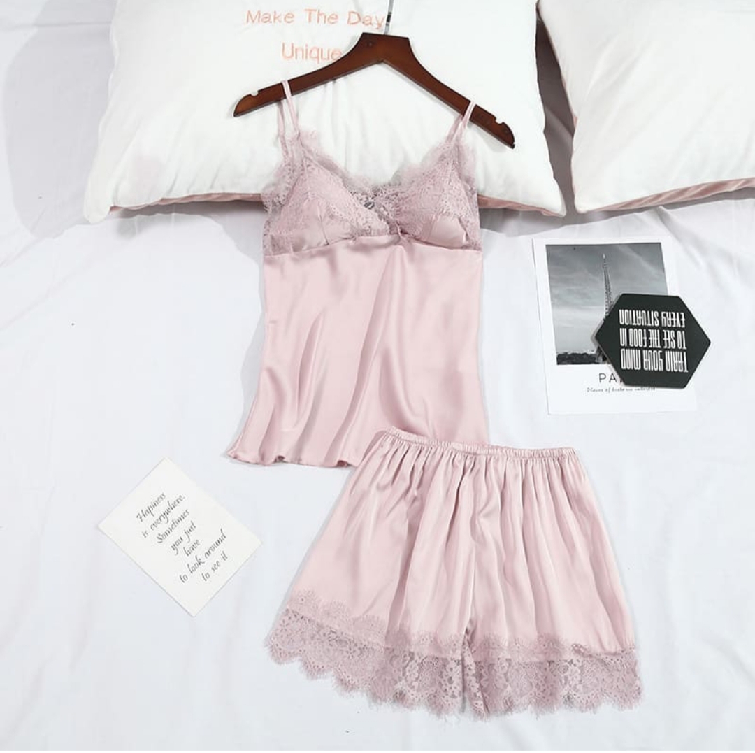 2 piece satin sleepwear in pink